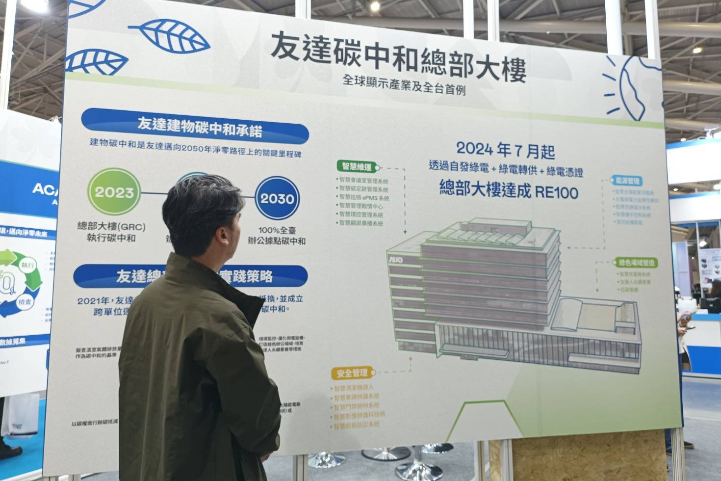 同時,於「淨零碳排與新能源」專區(qū)展示碳中和建物及減塑的實踐成果。友達期許透過創(chuàng)新綠色技術(shù)解決方案,協(xié)助企業(yè)實踐淨零轉(zhuǎn)型,共同構(gòu)建一個更美好的永續(xù)未來。