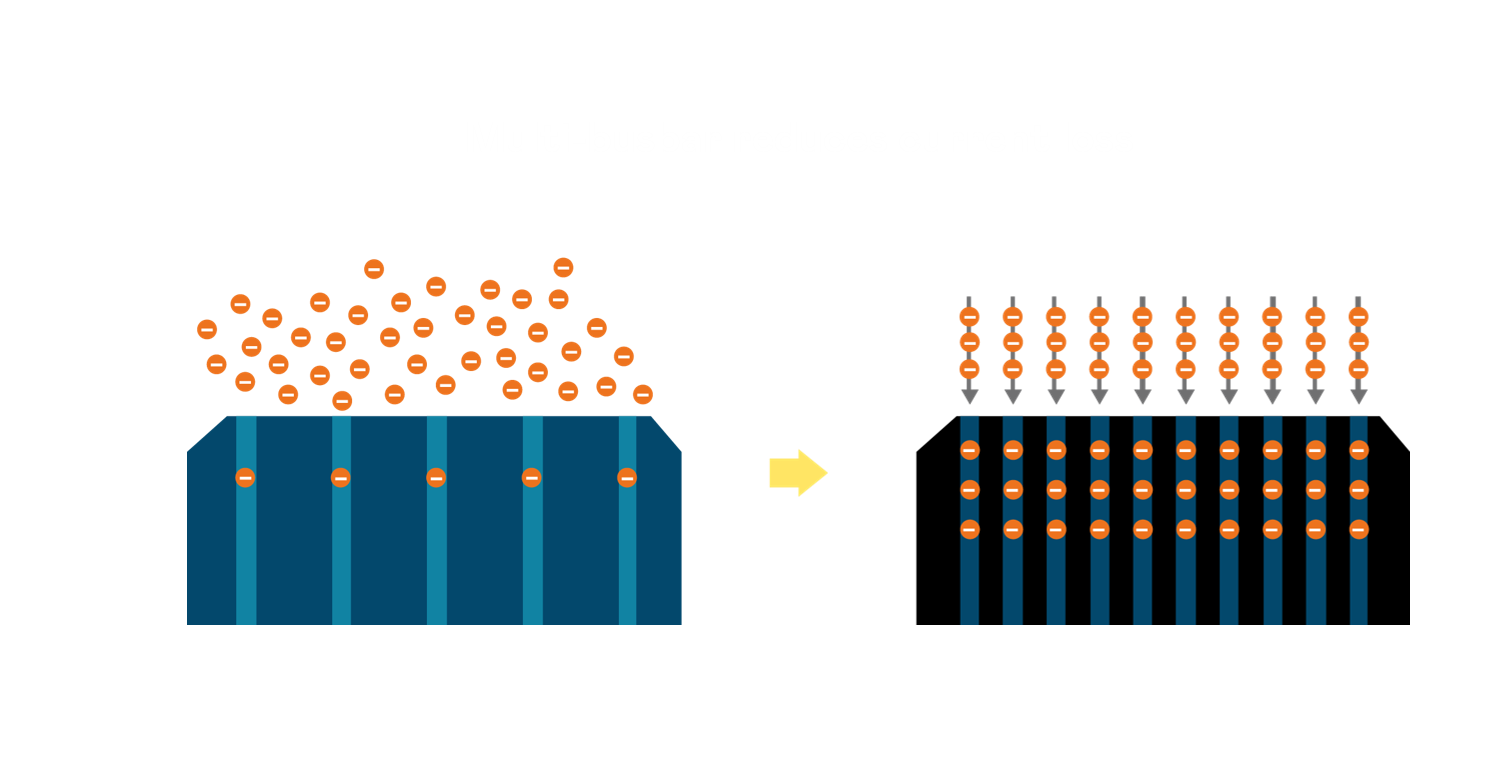 • 電池使用多條銅導(dǎo)線 (Copper wire) 于電池片上形成較短的電流路徑 ,提高電流收集效率,采用圓形設(shè)計(jì)的銅導(dǎo)線較傳統(tǒng)扁平式的銅焊帶 (Ribbon),可增加入射至電池的光線量。