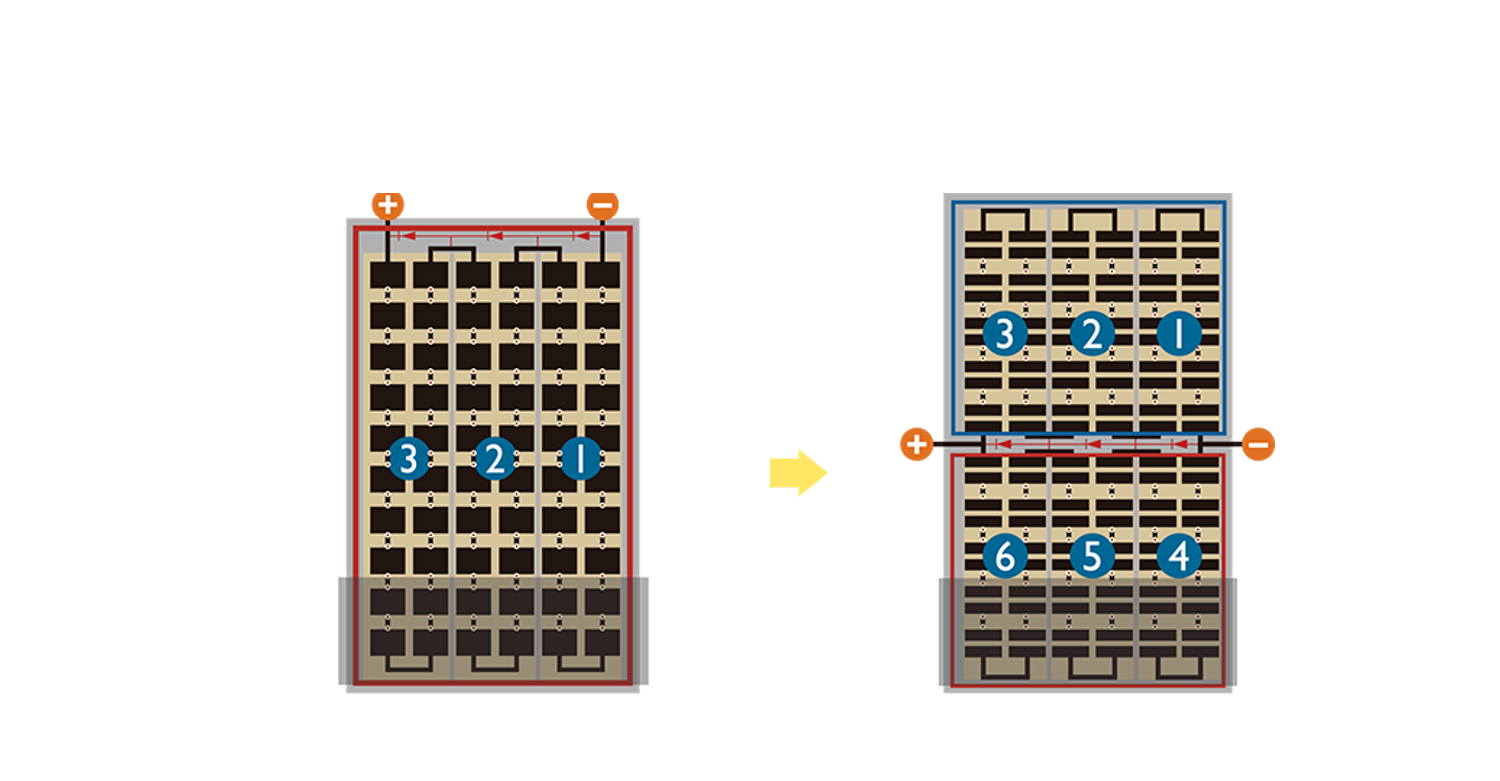 • 結(jié)合半切電池 ,降低遮陰影響、提升模組抗隱裂能力 、并減少電阻損耗,進(jìn)一步提升模組發(fā)電效能 。