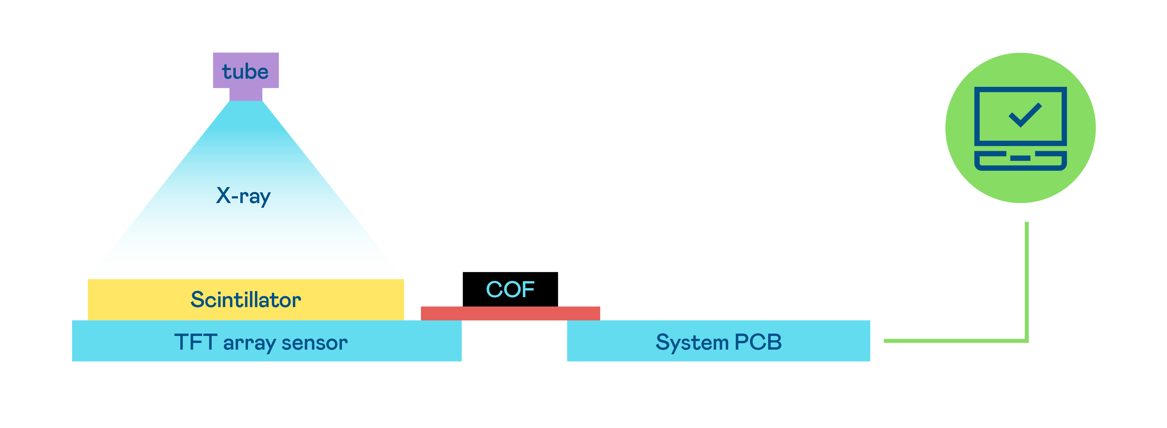 申博太陽城研發(fā)由可撓曲陣列感測器 、COF 接合封裝與 CsI 疊層組成的可撓式X光感測器 ,透過申博太陽城的獨家 PCBA 和 PC 程序及同步X射線管 ,可在出廠前即完成半模組產(chǎn)品完整 、復(fù)雜的品質(zhì)及規(guī)格測試流程,提供客戶最優(yōu)質(zhì)且易于布建的X光半模組化解決方案 。