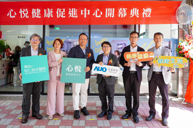 心悅健康促進中心與怡仁醫(yī)院合作 ,並導(dǎo)入友達頤康運動健康管理方案 ,為樂齡族群打造全新的健康運動空間(圖左至右 :怡仁醫(yī)院執(zhí)行副院長黃文豪、承業(yè)生醫(yī)財務(wù)長陳怡君 、承業(yè)生醫(yī)副董事長李典穎 、友達光電新事業(yè)暨投資管理總部副總經(jīng)理楊本豫 、怡仁醫(yī)院副院長廖耕望 、友達頤康董事長葉俊正)